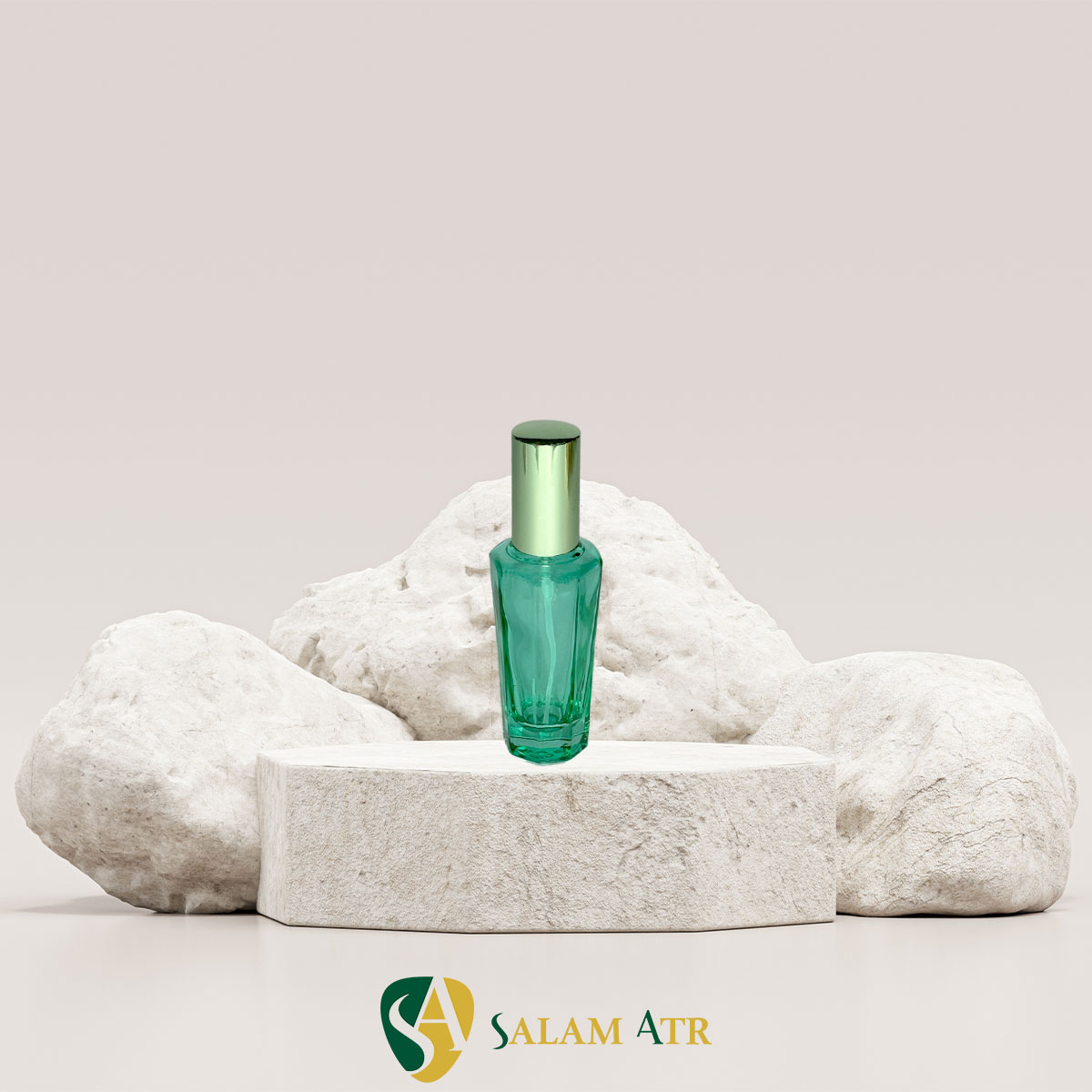 شیشه عطر خمره‌ای ۱۵ میل رنگی سبز مدل FX22C با بک گراند