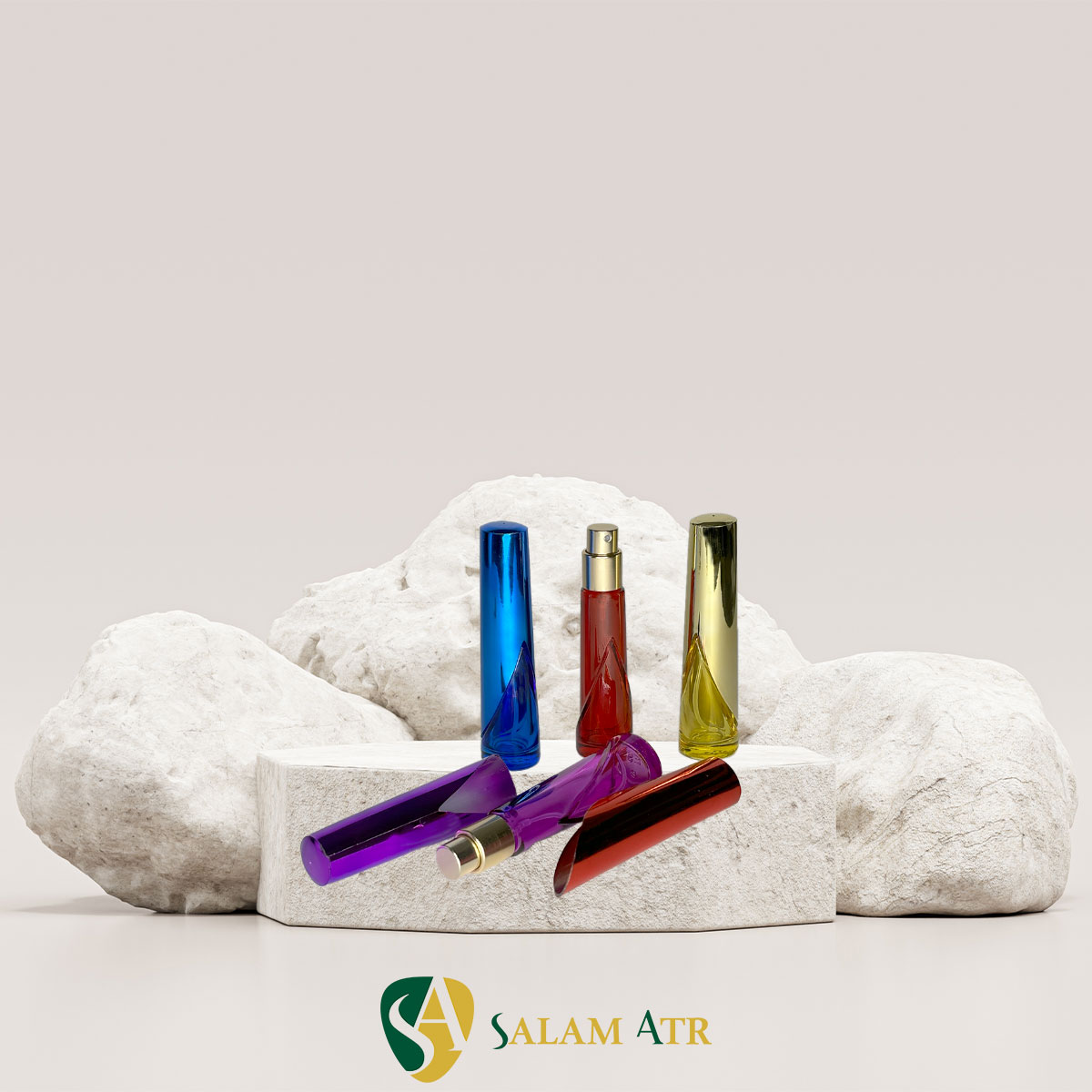 اگر به دنبال بطری عطری هستید که زیبایی و کیفیت را در کنار کارایی ارائه دهد، مدل شمعی ۱۵ میل رنگی بهترین انتخاب است. طراحی آن طوری است که با هر نوع رایحهای سازگار است و با رنگهای متنوع خود به محصولات شما جلوهای منحصربهفرد میدهد.