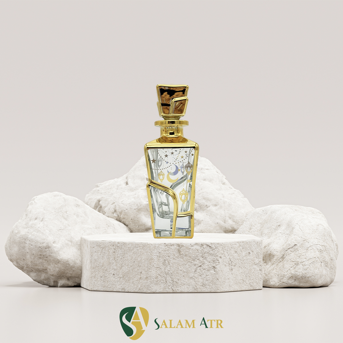 فرم مربعی این شیشه حس استحکام، نظم و قدرت را القا می‌کند. طراحی برجسته بدنه در کنار طلاکوب‌های ظریف و کلاسیک، جلوه‌ای لوکس و رسمی ایجاد کرده که برای رایحه‌های سنگین، شرقی، چوبی و عطرهای سطح بالا بسیار مناسب است.