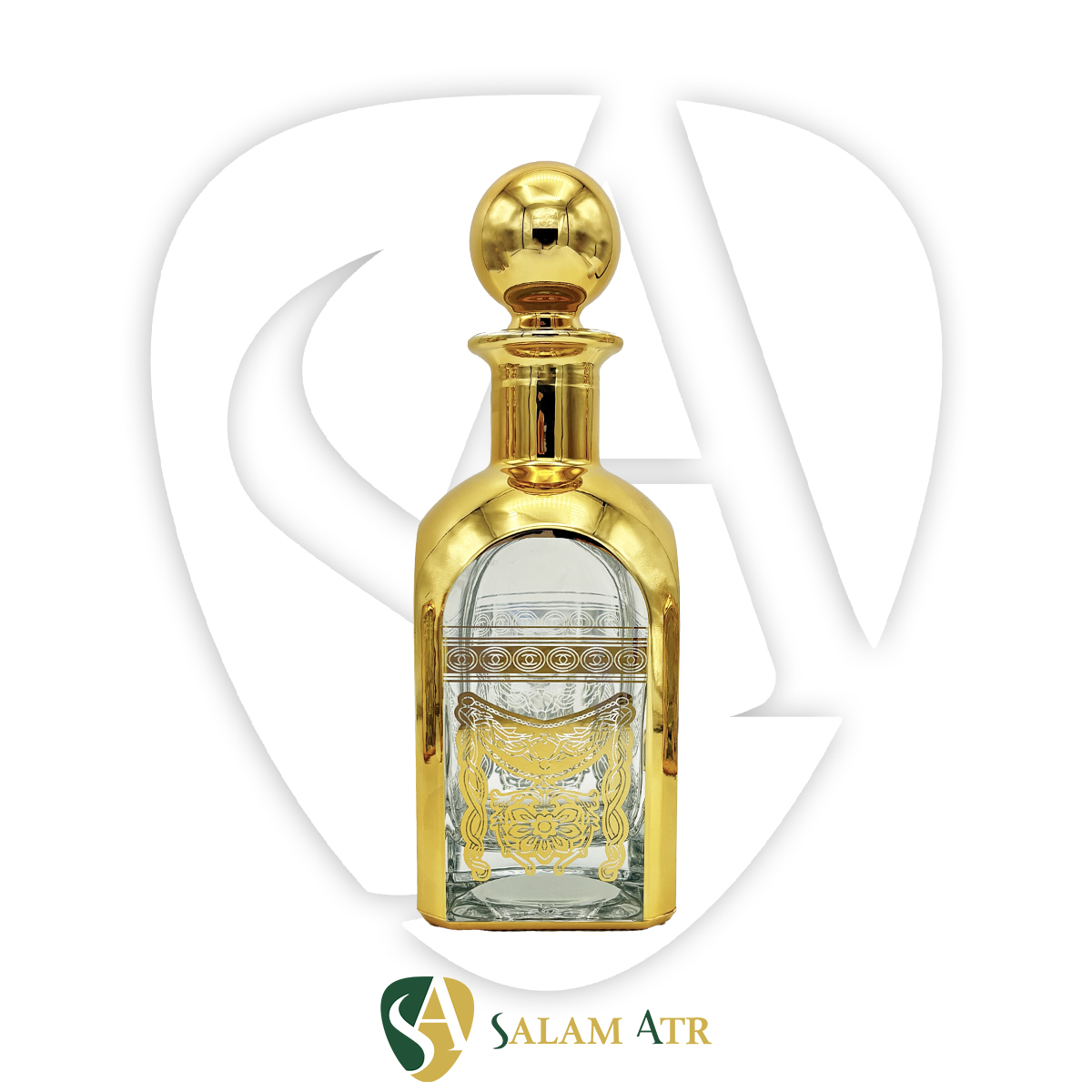 فرم هرمی این مدل، ساختاری متفاوت و چشم‌گیر ایجاد کرده است. خطوط زاویه‌دار بدنه در کنار طلاکوب‌های ظریف، جلوه‌ای لوکس و کلاسیک به محصول می‌بخشد. این سبک طراحی معمولاً در عطرهای پریمیوم و نسخه‌های خاص دیده می‌شود و برای برندهایی که به دنبال تمایز در بازار هستند، انتخابی حرفه‌ای محسوب می‌شود.