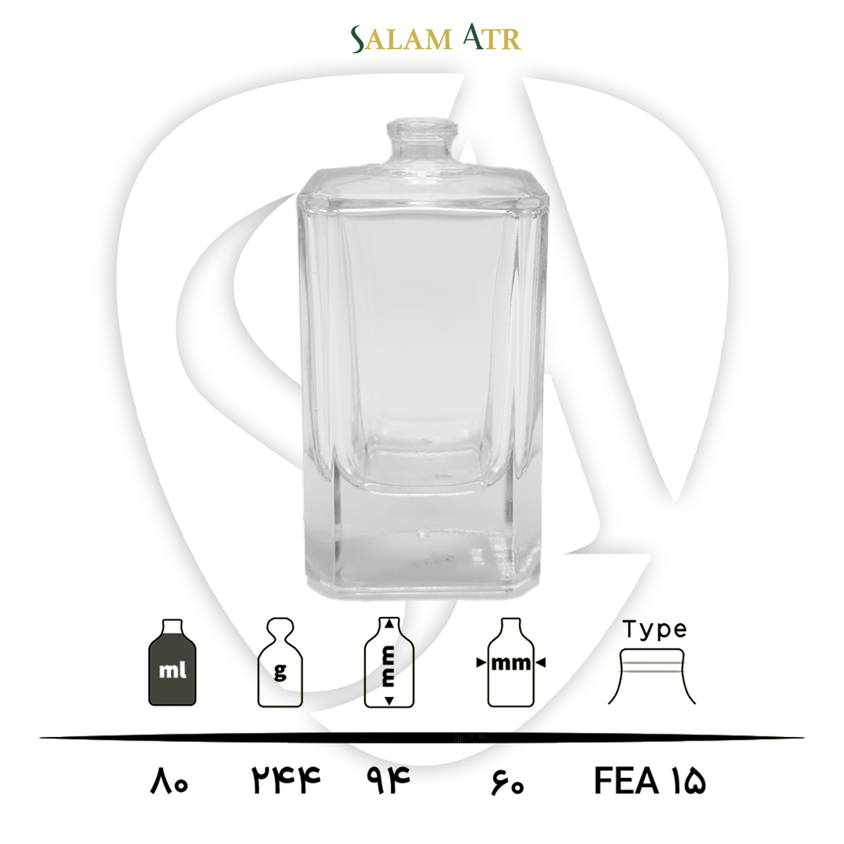 جدول ویژگیهای شیشه عطر TP80-003 شفاف 80 میل