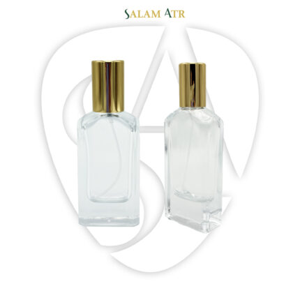 شیشه عطر مستطیل تخت 30 میل دهنه 18 با والف پلاستیکی کد AZ111
